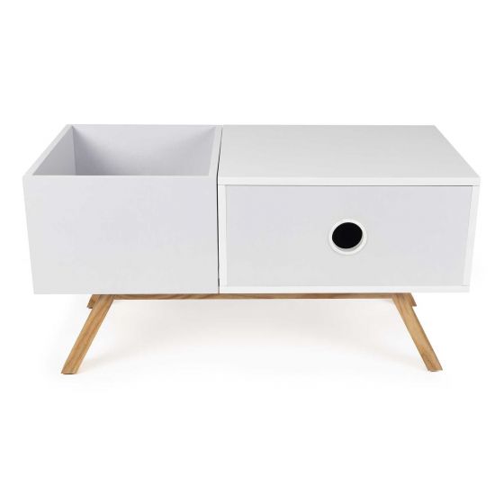 The open record crate invites you to dig through your collection and allows direct access to up to 130 12''-records. A closed-front compartment with push mechanism houses your amplifier, CDs or books. The smart cavity on the rear panel is designed to route cables, making them disappear easily.